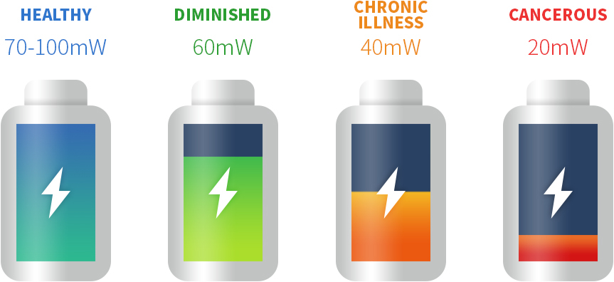 ဆဲလ္မ်ား ထိခိုက္သြားလွ်င္ျဖစ္ေစ မက်န္းမာလွ်င္ျဖစ္ေစ ဆဲလ္မ်ား၏ လႈပ္ရွားမႈ ေႏွးေကြးသြားသလို ရပ္တန္႔၍လည္း သြားႏိုင္ပါသည္။ လႈပ္ရွားမႈလွ်ပ္စစ္စြမ္းအားအတြက္ လိုအပ္ေသာ စြမ္းအင္မွာ နည္းပါးေသာ္လည္း ယိုယြင္းေနေသာ ဆဲလ္မ်ားသည္ လႈပ္ရွားႏိုင္ျခင္း မရိွေတာ့ေခ်။ ခႏၶာကိုယ္အျပင္ဘက္မွ သံလိုက္စက္ကြင္းကုထံုးျဖင့္ ကုသလွ်င္ ယိုယြင္းေနေသာ ဆဲလ္မ်ားကို အင္အား ျပန္လည္ ျဖည့္တင္းေပးျခင္းျဖင့္ အေထာက္အကူျပဳပါသည္။ ထို႕ေၾကာင့္ ကၽြႏ္ုပ္တို ့၏ ခႏၶာကိုယ္ရိွ ဆဲလ္မ်ားအတြက္ သံလိုက္စက္ကြင္းသည္ မရိွမျဖစ္ လိုအပ္ေသာ အေရးအႀကီးဆံုး အေၾကာင္းရင္းျဖစ္ပါသည္။